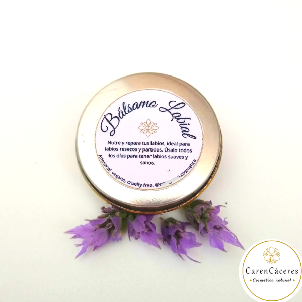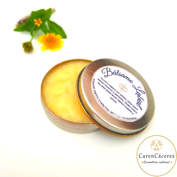 Balsamo labial realizado con manteca de cacao, manteca de karité, aceite de almendras y aceite esenciales